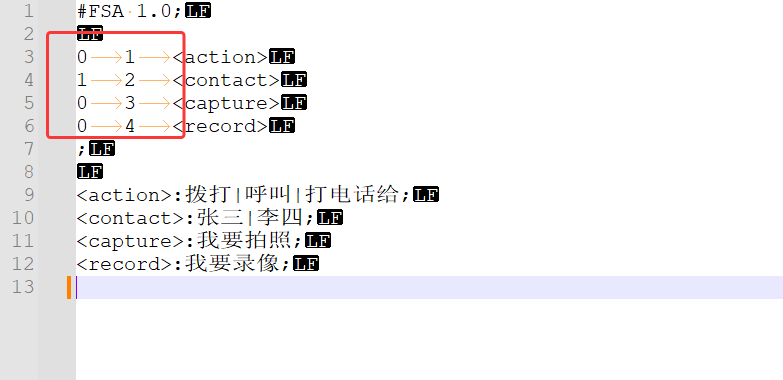 <div style="max-width: 100%; margin: 20px auto;"> <!-- 便签卡片容器 --> <div style="background-color: #ffffff; border-radius: 8px; box-shadow: 0 2px 8px rgba(0,0,0,0.1); overflow: hidden; font-family: 'Comic Sans MS', cursive, sans-serif;"> <!-- 便签头部 --> <div style="background-color: #F4F8FA; padding: 1px 10px; border-bottom: 1px solid #dee2e6; display: flex; justify-content: space-between; align-items: center;"> <div style="color: #0E42D2; font-weight: bold;font-size: 1.3rem;">概述</div> <div> </div> </div> <!-- 带横线的内容区域 --> <div style="padding: 25px; line-height: 29px; background-image: linear-gradient(transparent 26px, #dee2e6 27px, #dee2e6 27px, transparent 27px); background-size: 100% 28px; min-height: 100px; color: #333;"> <div>离线识别能力就是依赖本地识别引擎做语音数据处理,支持离线识别、离线命令词。<br>离线不依赖网络服务,但是效果比在线服务差。</div> <a href="#集成说明" style="color: #6f42c1; font-weight: 500;"> <strong>- 集成说明>>>点击跳转</strong></a> <a href="#结果解析" style="color: #6f42c1; font-weight: 500;margin-left: 40px;">    <strong>- 结果解析>>>点击跳转</strong></a> <a href="#进阶使用" style="color: #6f42c1; font-weight: 500;margin-left: 40px;">    <strong>- 进阶使用>>>点击跳转</strong></a> <div></div> </div> <!-- 便签底部 --> </div> </div> </div> <div id="集成说明"> </div> ## 1. 集成说明 ### 1.1. 获取SDK AIUI平台应用下下载的通用SDK开发包,默认仅支持在线语音交互能力【唤醒除外】,需要支持离线语音识别SDK,需要联系讯飞商务申请,申请方式有: - 方式1:邮件联系[技术支持](mailto:aiui_support@iflytek.com)说明需求,并提供有效信息 - 公司名称 - 联系人方式 - 产品需求描述 - AIUI应用appid信息 - 方式2:添加AIUI QQ交流群(575396706)联系讯飞技术同事咨询。 获取支持离线识别能力SDK后,AIUI输出的资源包中,一般包含两部分: - 开启了离线能力的SDK原始库 - 绑定appid的离线引擎资源 ### 1.2. 参数配置 <div style="display: flex; align-items: flex-start; gap: 16px; padding: 16px; background: #fff5f6; border-radius: 5px; border-left: 4px solid #e83e8c; box-shadow: 0 4px 12px rgba(255, 215, 0, 0.08); margin-bottom: 16px; transition: transform 0.2s ease, box-shadow 0.2s ease;"> <div> <div style="font-weight: 600; margin-bottom: 4px;">温馨提示</div> <div style="font-size: 14px; line-height: 1.5;">当(esr.engine_type)离线识别交互模式未指定开启离线命令词能力时,preloads字段要丢弃掉,否则引擎加载将直接报错。</div> </div> </div> `aiui.cfg`中增加离线识别相关配置: ```json "speech":{ "intent_engine_type":"local" }, "esr":{ "engine_type": "wfst_fsa", "pgs_enable": "1", "res_type":"assets", "res_path":"esr/common.jet", "preloads": [ { "id": 0, "res_type": "assets", "res_path": "esr/contact.jet" } ] }, ``` <table> <tr> <td colspan="2" align="center"><b>模块名称</b></td> <td colspan="3" align="center"><b>模块说明</b></td> </tr> <tr> <td><b>模块名称</b></td> <td><b>模块说明</b></td> <td><b>参数名称</b></td> <td><b>是否必传</b></td> <td><b>参数和取值说明</b></td> </tr> <tr> <td><b>speech</b></td> <td>业务相关参数 </td> <td>intent_engine_type</td> <td>是</td> <td><b>语音交互模式</b><br>cloud:纯在线语音交互<br>local:纯离线语音交互<br>mixed:离在线混合交互【并行模式,返回最快的有效结果】<br>pipe:优先离线,无有效结果时在请求在线【串行模式】<br>parallel:离在线混合交互【并行模式,返回全部结果,需SDK版本 6.6.0001.0040版本以上】</td> </tr> <tr> <td rowspan="5"><b>esr</b></td> <td rowspan="5">离线识别参数</td> <td>engine_type</td> <td>是</td> <td><b>离线识别交互模式</b><br>wfst:离线听写模式<br>wfst_fsa:离线听写+离线命令词匹配模式 <br>fsa:离线命令词匹配模式</td> </tr> <tr> <td>pgs_enable</td> <td>否</td> <td><b>离线听写流式识别模式</b><br>1:开启<br>0:关闭(默认)</td> </tr> <tr> <td>res_type</td> <td>是</td> <td><b>离线识别资源加载方式</b><br>assets:assets资源(apk工程的assets文件)<br>path:path资源(sdcard文件) </td> </tr> <tr> <td>res_path</td> <td>是</td> <td><b>离线识别资源文件路径</b><br>使用识别离线识别时必须设置。</td> </tr> <tr> <td>preloads</td> <td>否</td> <td><b>离线语法文件加载</b><br>当开启离线命令词能力时才需要配置。<br>json数组格式,支持多个离线语法文件加载,语法id取值不可重复</td> </tr> </table> **重点字段说明**: - `intent_engine_type` 控制音频到语义结果的解析方式,取值有: - 纯在线处理模式:cloud  - 纯离线模式:local  - 离在线并行模式:mixed、parallel  - 离在线串行模式:pipe  - `preloads` 配置初始化时默认编译加载的离线语法资源,初始化时默认编译加载的离线语法资源。可以配置多条预加载的资源,在每一条配置中需要声明编译加载语法ID和语法文件路径。 - 当设置 wfst 纯离线听写模式时,不需要配置该能力项 - 语法文件支持动态修改。具体见下发使用说明 如上配置之后,SDK在识别时就会按照配置的离线语法进行离线命令词识别,并通过`EVENT_RESULT`返回离线结果,结果数据示例请参见`离线结果`一节的说明。 ### 1.3. 离线语法文件编辑 上述章节中提到,当`esr.engine_type`取值模式开启了离线命令词能力【`wfst_fsa` 或 `fsa`】,`preloads`字段将需要配置离线语法文件。 离线命令语法是使用 FSA 描述的语法,对交互话术进行句式拆解,构建句式。 示例离线语法如下,对应的交互句式为: {action}{contact}[{phoneType}] - [] 代表非必选项 ``` #FSA 1.0; 0 1 <action> 1 2 <contact> 2 3 - 2 3 <phoneType> ; <action>:拨打|呼叫|打电话给; <contact>:张三|李四;