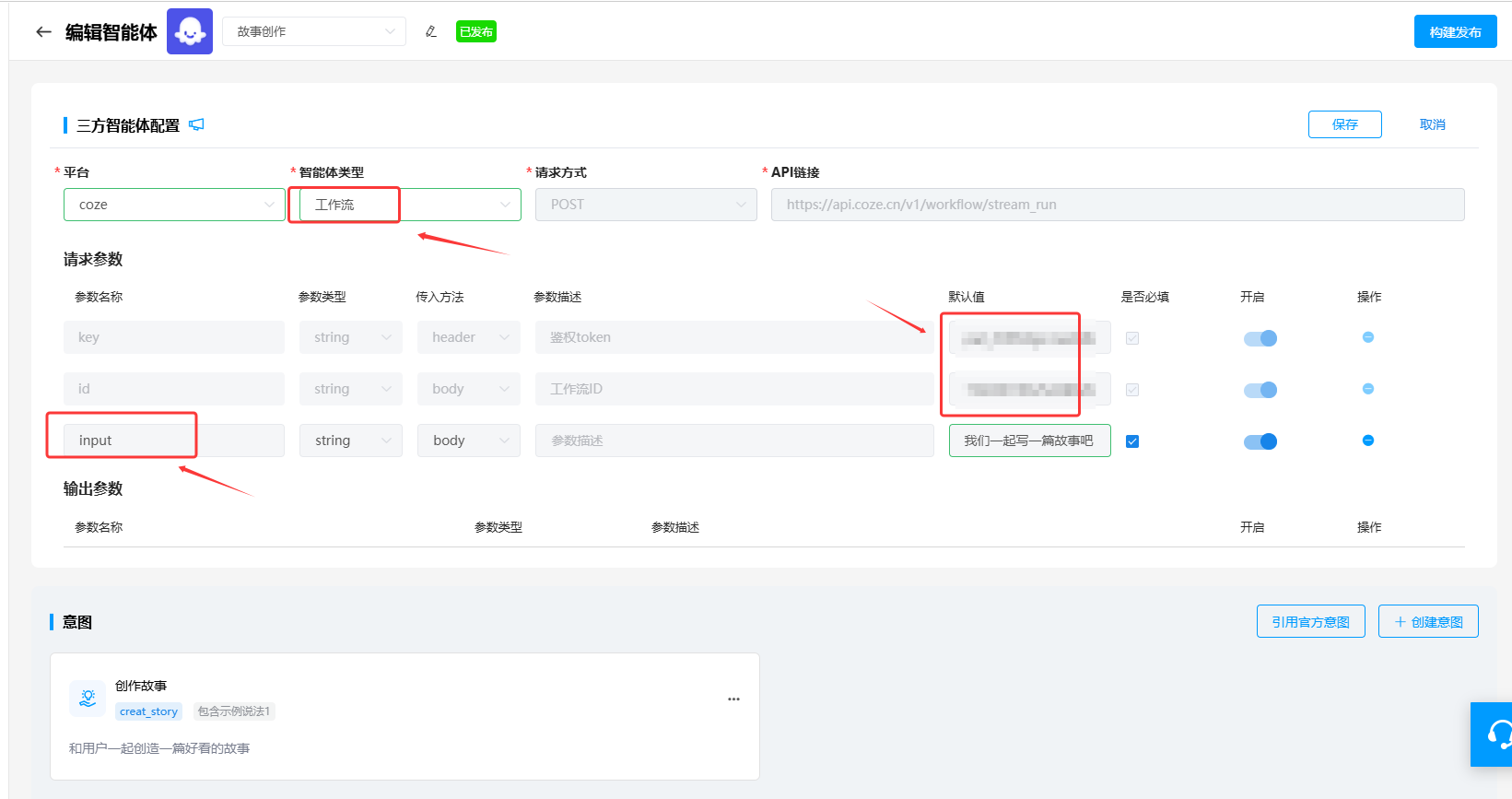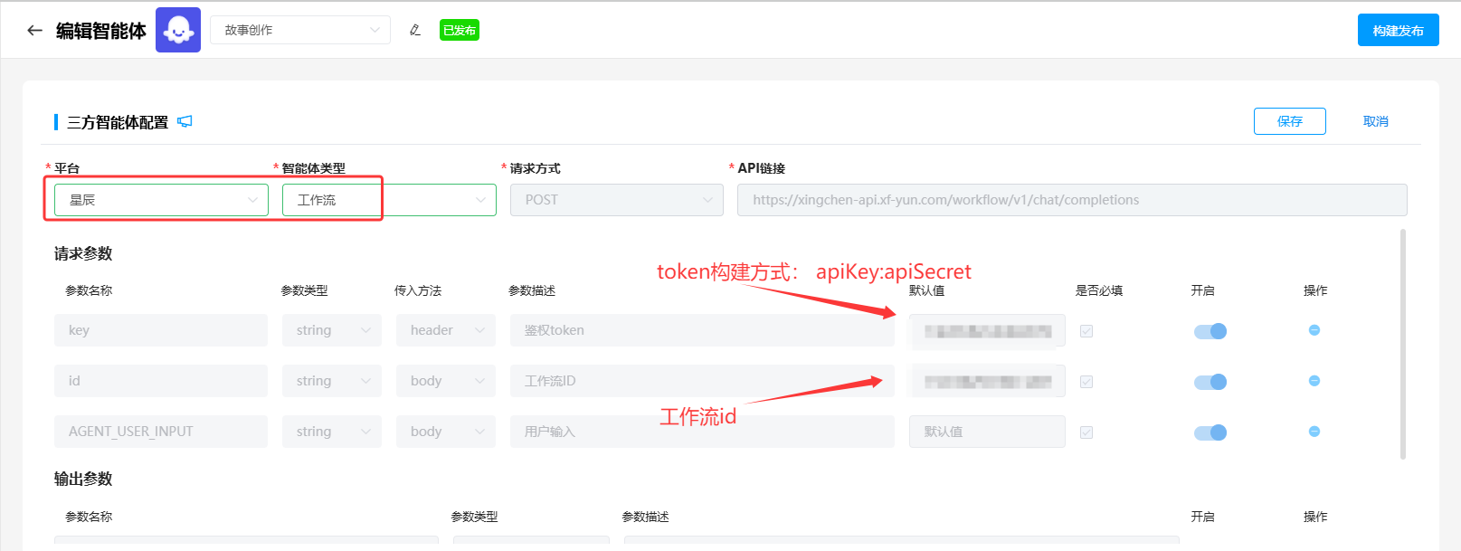 <div style="max-width: 100%; margin: 20px auto;"> <!-- 便签卡片容器 --> <div style="background-color: #ffffff; border-radius: 8px; box-shadow: 0 2px 8px rgba(0,0,0,0.1); overflow: hidden; font-family: 'Comic Sans MS', cursive, sans-serif;"> <!-- 便签头部 --> <div style="background-color: #F4F8FA; padding: 1px 10px; border-bottom: 1px solid #dee2e6; display: flex; justify-content: space-between; align-items: center;"> <div style="color: #0E42D2; font-weight: bold;font-size: 1.3rem;">智能体介绍</div> <div> </div> </div> <!-- 带横线的内容区域 --> <div style="padding: 25px; line-height: 29px; background-image: linear-gradient(transparent 26px, #dee2e6 27px, #dee2e6 27px, transparent 27px); background-size: 100% 28px; min-height: 100px; color: #333;"> <div>智能体是一种能够自主行动、感知环境、做出决策并与环境交互的智能应用或实体。</div> <div>在AIUI平台上,智能体本质上是个自定义工具,用于解决垂直场景对话任务,支持任务抽槽、信源查询、大模型调用和任务逻辑管理等能力,适用于复杂对话任务。开发时配置的对话意图是AIUI对智能体等自定义工具进行调度管理的重要依据。为智能体配置意图,可以将相关意图的用户Query分发给特定的智能体处理。</div> <div><strong>- 新智能体</strong></div> <div>-- 适用链路:仅支持极速交互语义链路</div> <div>-- 支持能力:支持任务抽槽、信源查询、大模型调用等能力</div> <div><strong>- 旧智能体</strong></div> <div>-- 适用链路:仅支持通用大模型语义链路</div> <div>-- 支持能力:仅支持对话意图抽取</div> </div> <!-- 便签底部 --> </div> </div> </div> ## 1、新智能体接入说明 AIUI平台升级版本新智能体开发目前支持两种方式开发接入: <div style="display: flex; flex-wrap: wrap; gap: 12px; padding: 10px; max-width: 100%; margin: 0 auto;"> <!-- 卡片1 --> <a href="#三方智能体" style="text-decoration: none; color: #6f42c1; width: calc(50% - 6px);box-sizing: border-box;"> <div class="card" style="background: #ffffff; border-radius: 6px; box-shadow: 0 2px 8px rgba(0,0,0,0.08); overflow: hidden; transition: all 0.3s ease; cursor: pointer; border-top: 5px solid #e0e0e0; display: flex; flex-direction: column; height: 100%;"> <div style="padding: 10px 15px; line-height: 1.6; flex: 1;"> <h3 style="font-size: 1.1rem; margin: 0 0 6px 0; color: #0969DA; font-weight: 600;">三方智能体</h3> <p style="font-size: 1rem; color: #36548B; margin: 0;">接入的智能体需要是符合 Open API 协议规范的API,目前AIUI适配了两个三方平台,具体支持能力如下,需要客户先在对应平台上开发对应类别的智能体后,配置到AIUI平台来。</p> <p> >>>点击跳转 </p> </div> </div> </a> <!-- 卡片2 --> <a href="#模板智能体" style="text-decoration: none; color: #6f42c1; width: calc(50% - 6px);"> <div class="card" style="background: #ffffff; border-radius: 6px; box-shadow: 0 2px 8px rgba(0,0,0,0.08); overflow: hidden; transition: all 0.3s ease; cursor: pointer; border-top: 5px solid #e0e0e0; display: flex; flex-direction: column; height: 100%;"> <div style="padding: 10px 15px; line-height: 1.6; flex: 1;"> <h3 style="font-size: 1.1rem; margin: 0 0 6px 0; color: #0969DA; font-weight: 600;">模板智能体</h3> <p style="font-size: 1rem; color: #36548B; margin: 0;">基于AIUI平台自己搭建的模板智能体做开发接入,支持切换高级模式使用节点编排能力进行开发。</p> >>>点击跳转 </div> </div> </a> </div> <!-- 样式 --> <style> .card:hover { box-shadow: 0 8px 16px rgba(9, 105, 218, 0.15); transform: translateY(-2px); border-left-color: #0754b3; } .card:hover div[style*="background-color: #0969DA"] { background-color: #0754b3; } /* 响应式调整 */ @media (max-width: 600px) { .card { border-left-width: 4px; } div[style*="padding: 15px 18px"] { padding: 12px 15px; } div[style*="grid-template-columns: 1fr 1fr"] { grid-template-columns: 1fr; } div[style*="padding: 0 12px"] { padding: 0 8px; } } </style> <div id="三方智能体"> </div> ## 2、三方智能体 <table border="0" class="docutils"> <colgroup> <col width="10%" /> <col width="10%" /> <col width="10%" /> <col width="10%" /> <col width="10%" /> </colgroup> <tbody valign="center"> <tr class="row-odd"> <th style="text-align: center;">平台</th> <th style="text-align: center;">网址</th> <th style="text-align: center;">智能体类型</th> <th style="text-align: center;">请求方式</th> <th style="text-align: center;">鉴权方式</th> </tr> <tr> <td style="text-align: center;"><a href="#星辰平台接入">星辰Agent</a></td> <td style="text-align: center;"><a href="https://agent.xfyun.cn/home">访问星辰Agent平台</a></td> <td style="text-align: center;">智能体-工作流</td> <td style="text-align: center;">HTTP</td> <td style="text-align: center;">Bear Token</td> </tr> <tr> <td rowspan="2" style="text-align: center;"><a href="#Coze平台接入">Coze</a></td> <td rowspan="2" style="text-align: center;"><a href="https://www.coze.cn/home">访问Coze平台</a></td> <td style="text-align: center;">智能体-提示词</td> <td style="text-align: center;">HTTP</td> <td style="text-align: center;">个人访问令牌</td> </tr> <tr> <td style="text-align: center;">智能体-工作流</td> <td style="text-align: center;">HTTP</td> <td style="text-align: center;">个人访问令牌</td> </tr> </tbody> </table> <div style="display: flex; align-items: center; background-color: #fff3cd; border-left: 6px solid #ffc107; border-radius: 4px; padding: 12px 16px; gap: 8px;"> <div style="width: 30px; height: 30px; flex-shrink: 0;"> <svg viewBox="0 0 24 24" fill="none" stroke="currentColor" stroke-width="2" stroke-linecap="round" stroke-linejoin="round"> <path d="M12 9v2m0 4h.01m-6.938 4h13.856c1.54 0 2.502-1.667 1.732-3L13.732 4c-.77-1.333-2.694-1.333-3.464 0L3.34 16c-.77 1.333.192 3 1.732 3z"/> </svg> </div> <div style="flex: 1